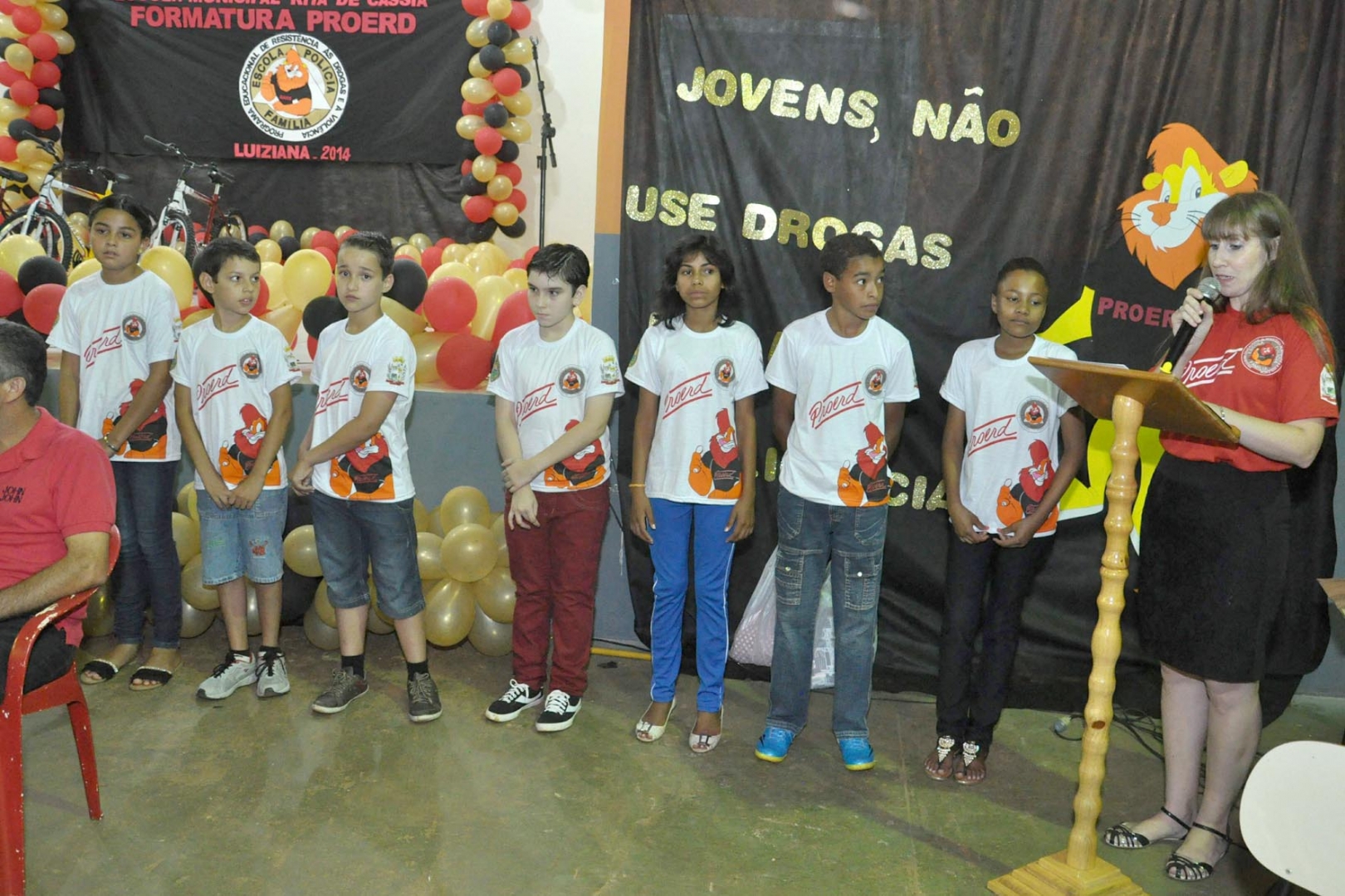 Em torno de 114 crianças (alunos de 4ª a 5ª séries) das escolas Municipal Rita de Cássia (sede), Escola Municipal Dom Pedro II (Valinhos) e Escola Municipal Paiquerê (Serra Molhada), participaram da formatura em Luiziana, e ao receberem o certificado, prestaram o compromisso de manter-se afastadas e longe das drogas.