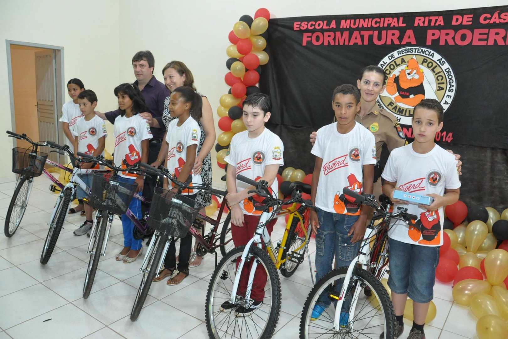 Durante o semestre os alunos redigiram uma redação sobre o PROERD, houve uma seleção das melhores de cada turma que foram premiadas com bicicletas. Confira os vencedores:
