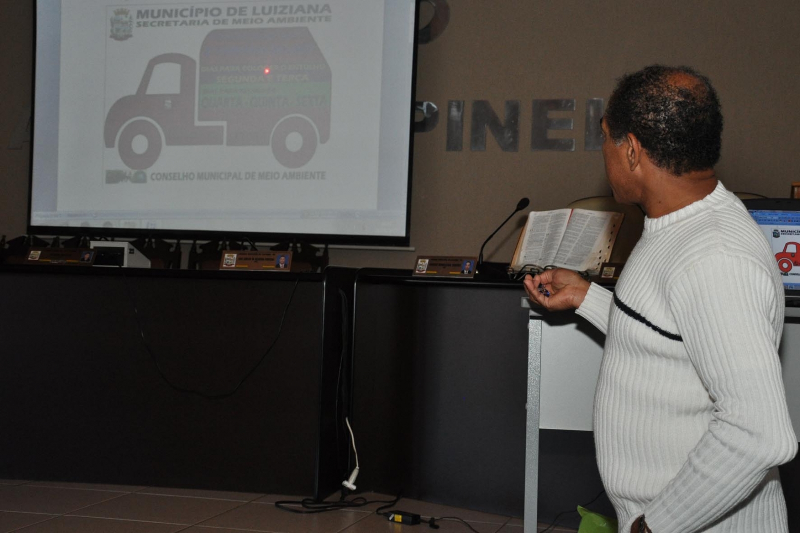Durante a palestra houve também a exposição de um mapa da cidade dividida em quatro setores com cores diferenciadas para a coleta de entulhos que terá início na próxima semana.