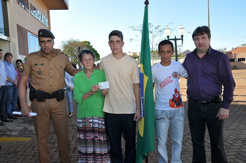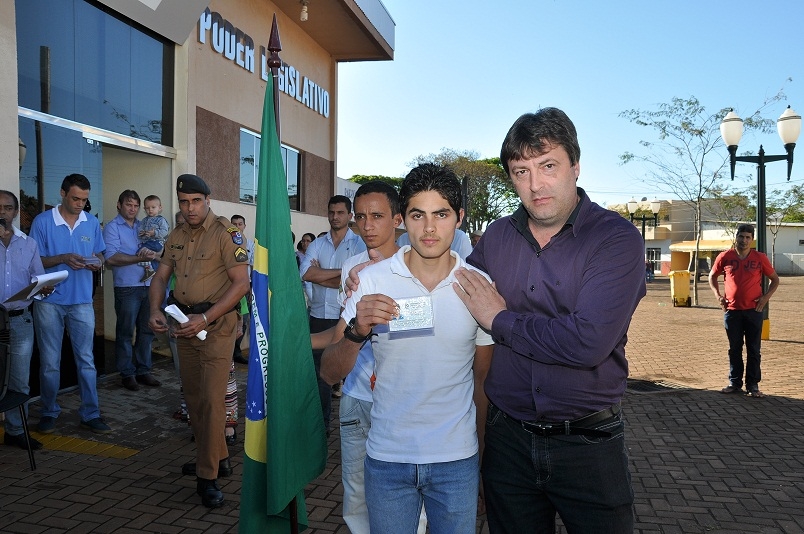O prefeito de Luiziana, Mauro Alberto Slongo, que também é presidente da Junta Militar, entregou para um dos jovens o certificado de dispensa de incorporação (CDI). Ele falou sobre a pátria e que há um novo horizonte para a vida dos jovens e que o caminho a ser percorrido deve ser o da educação e longe do mundo das drogas.