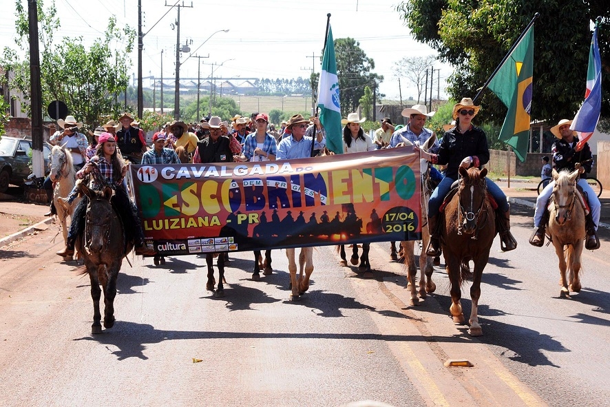 O maior evento em comemoração ao Descobrimento do Brasil realizado em Luiziana aconteceu nesse domingo (17), e reuniu cavalheiros e amazonas de várias cidades da região dentre elas Iretama, Barbosa Ferraz, Campo Mourão, Engenheiro Beltrão e todas as comitivas de Luiziana.