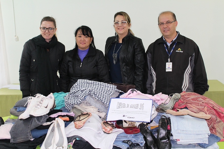 Receberam as doações a Secretaria de Ação Social, Marli Slongo, a Assistente Social do CRAS Sandra Bernini, a Assistente Social Patricia Finatto e o Assistente de Controle Operacional e facilitador do Programa 5s João Joarez Mazzo.