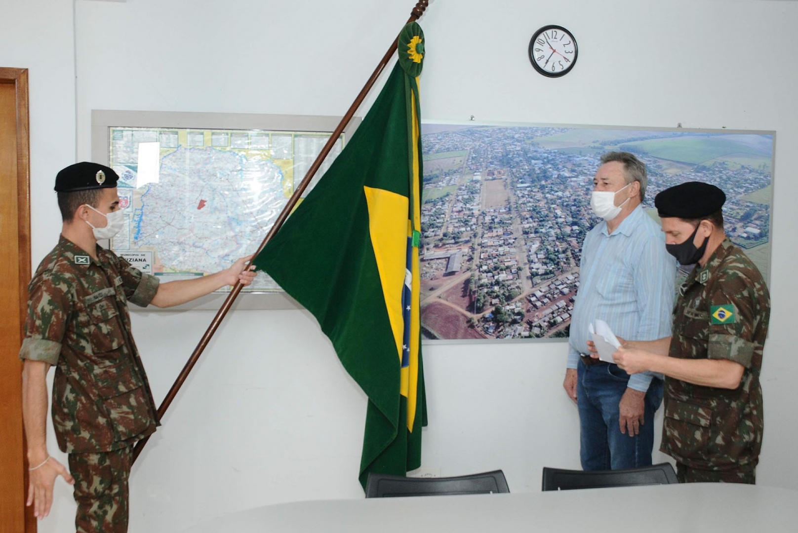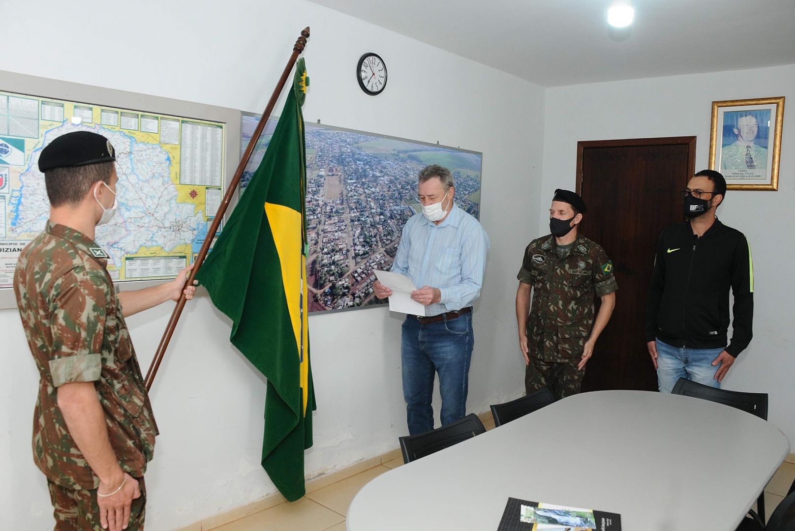 O prefeito de Luiziana, Wilson Tureck tomou posse, nesta sexta-feira (10), como presidente da 318ª Junta do Serviço Militar de Luiziana, em solenidade realizada no seu gabinete. Durante a posse, Tureck fez o juramento à Bandeira, assinou o termo de posse previsto na Lei do Serviço Militar, contribuindo para o exercício da cidadania e o engrandecimento da Pátria.