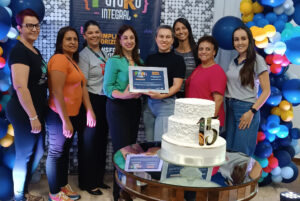 Luiziana representada pela secretária de Educação Gislaine Kelh de Carvalho, e equipe pedagógica municipal receberam um quadro de menção honrosa pela parceria formada.