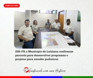De acordo com o Secretário de Agricultura, Diogo Bianchi, essa parceria entre IDR-PR e o município de Luiziana será para melhorar a qualidade, produtividade e gestão das atividades do pequeno e médio produtor, principalmente apoiando a secretaria municipal de agricultura na elaboração de projetos e programas.