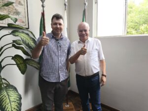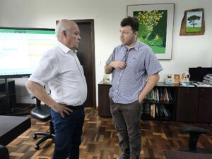 O prefeito de Luiziana, Edson Liss, visitou o diretor-presidente do IDR-Paraná, Natalino Avance de Souza, para tratar de questões importantes para o desenvolvimento rural do município. O encontro buscou fortalecer parcerias e estratégias que tragam mais apoio técnico e recursos para os agricultores locais, promovendo o crescimento sustentável da região.