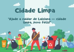 Manter Luiziana limpa, bonita e acolhedora é um dever de todos. A Prefeitura Municipal, por meio da Secretaria de Meio Ambiente, segue trabalhando diariamente para oferecer uma cidade mais organizada e saudável — mas sua colaboração é essencial!