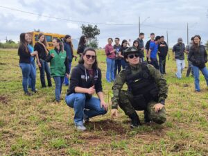 A Polícia Ambiental também esteve presente, reforçando a parceria entre órgãos públicos e instituições de ensino na promoção de atividades voltadas à sustentabilidade e à preservação da biodiversidade local.