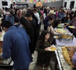 O prato principal, a tradicional Leitoa à Paraguaia, encantou os paladares, acompanhada de um cardápio completo com arroz, feijão tropeiro, polenta recheada, frango ao molho, saladas e sobremesas. Tudo preparado com muito capricho pela organização, que não mediram esforços para oferecer uma noite inesquecível.