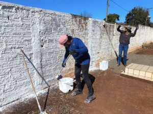 A manutenção incluiu a pintura de muros e estruturas, além da limpeza geral das áreas internas, recolhimento de resíduos e roçada do gramado.
