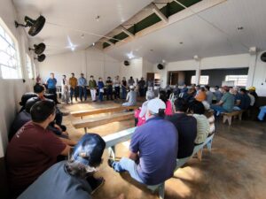 O encontro discutiu as obras de asfaltamento em 3 km da Estrada do Meio aos Sacomans, com investimento de R$ 2.912.500,00. O Relatório Técnico de Vistoria (RTV) foi apresentado pelos representantes do IDR-Paraná, Clovis Rosa e Laura Helena Duarte da Silva, detalhando medidas como entrada de máquinas, retirada de cercas e responsabilidades de manutenção.
